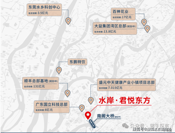 水岸·君悦东方位于位于东莞大道西生态片区,紧邻南阁大桥,可一桥直抵厚街万达,沿港口大道转东莞大道一路直达南城CBD