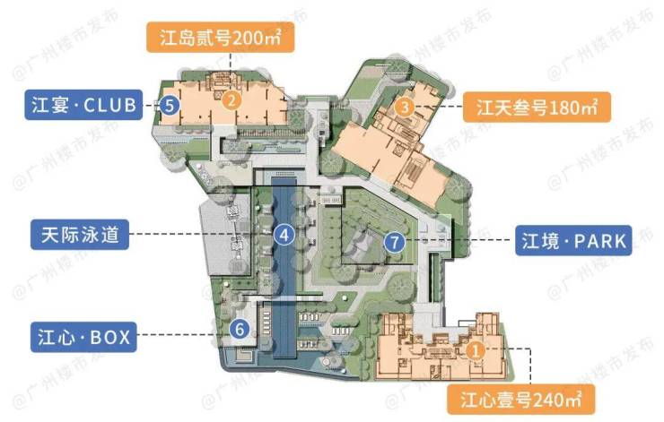 细研究了项目流出的社区平面图,发现如今的中海,在江景打造上已经不满足于一线江景,而是再次运用它很擅长的对江景的营造,将拥江体验引入每一个产品里面。