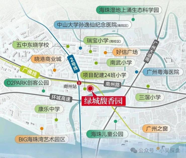 绿城馥香园的交通配置形成了显著竞争力,项目紧邻地铁2号线与广佛线交汇的南洲站,直线距离仅100米,步行几分钟即可抵达,这种“地铁口物业”的属性在广州核心区尤为稀缺。