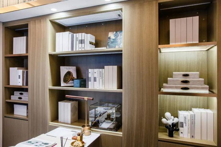 整体书房氛围相得益彰。同时暗藏了大量的存储、展示空间。在去繁就简的形式中,舒缓了生活的节奏。