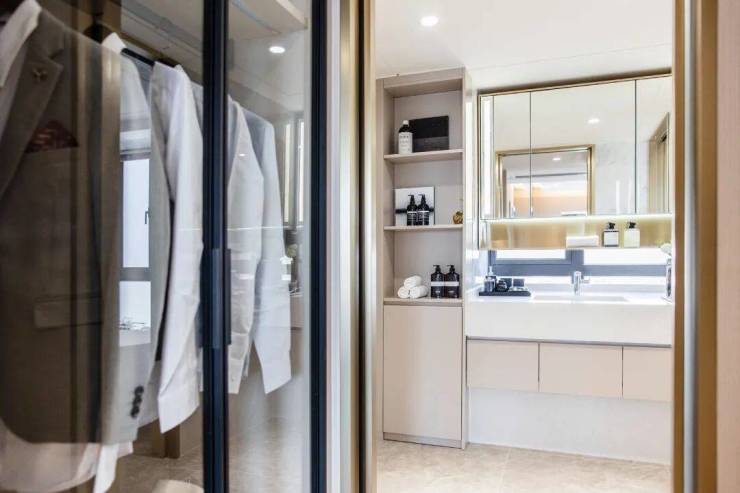 不同空间的衣柜都量身订造,标准化产品也有着打磨后的精致感。每一处都有着不同材质、不同功能、不同灯光等设计,为居住提供了更多的可能。