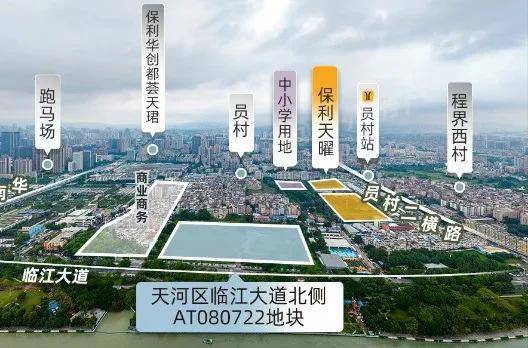 地块位于规划花城大道南侧,紧邻华南快速干线、黄埔大道中、临江大道及科韵路等主要交通干道,这也是天河比较难得的靠近地铁站的盘,地块东北侧距离地铁5号线与11号线交汇的员村站仅150m,5号线+11号线可以连通广州最核心的几个商务圈---珠城、琶洲、天河北、白鹅潭等等,通达性很强。