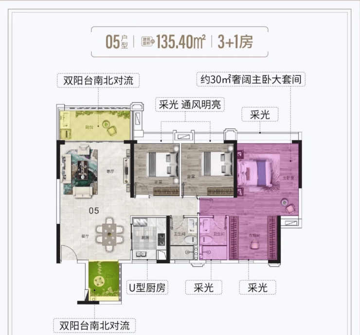 约30平方宽奢主卧大套间,南北对流,畅享品奢生活