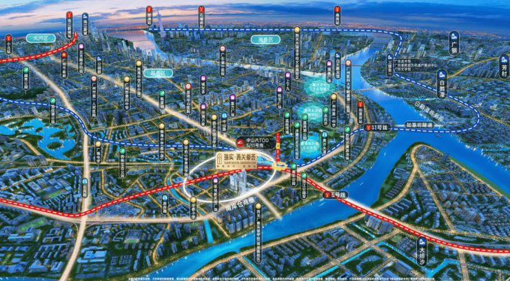 此外,项目所在的中山八还是重要的 TOD 枢纽,这里不仅汇聚了 5 号线和 11 号线,还拥有 34 条公交线路,这将成为一个集地铁、公交于一体的综合性交通枢纽,为业主的出行提供更多选择。