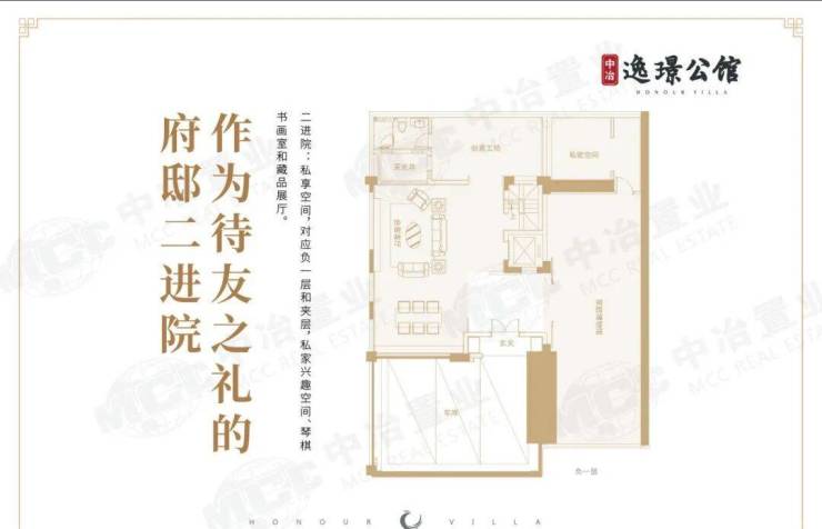 二进院:6米挑高中空会客厅,可定制茶室、书房