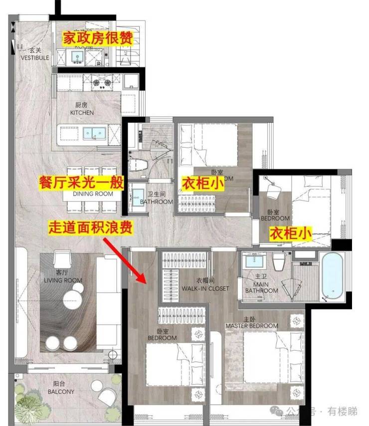 另外,所有次卧的衣柜位都比较小。