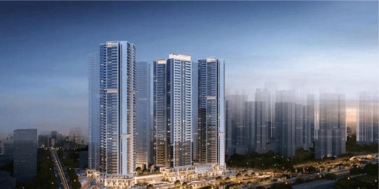 整体规划:𝟕栋超高层住宅+𝟒𝟎𝟎𝟎㎡商业
