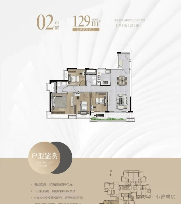 目前在售75-129㎡二至四房,以方正通透、高空间利用率的设计,适配不同广州家庭需求。