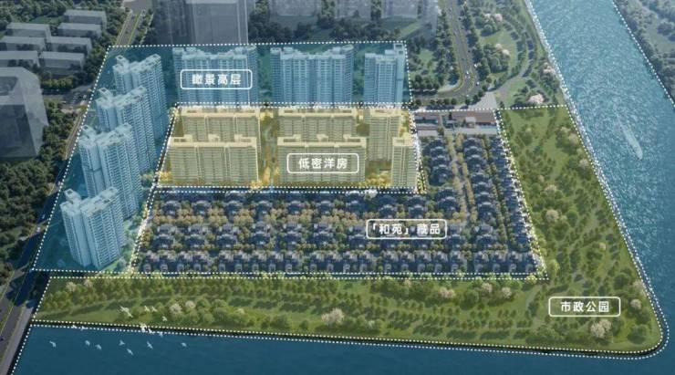 项目由7栋高层住宅、6栋洋房和低密度合院组成,向270°滨河景观开放,层层递进,形成前低后高、玉带环腰的风水格局,保证每户的良好采光和景观朝向。