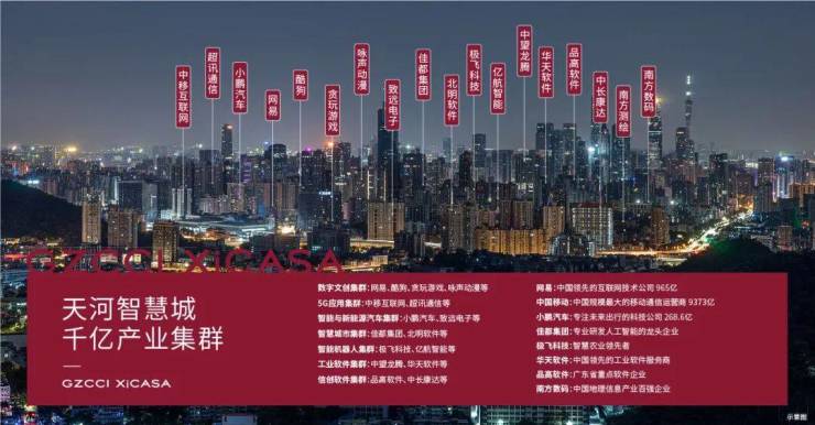 天河智慧城汇聚中国移动、网易、酷狗、小鹏汽车等3000多家科技企业、1000多家高新技术企业,构建八大产业集群,2023年总收入达3226亿元,引进20多万技术人才,“广州硅谷”孕育而生,成为湾区科创精英宜居宜业之地。