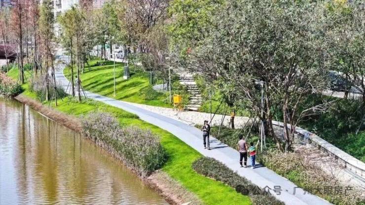 小区出门15米就是约4.5万平的滨水公园,是万科融合1700多年花地文化故事,打造瑧园业主归家必经的第一道动线。