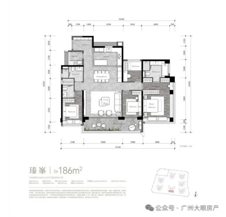建面约186m² 4房+𝟐厅3卫+灵动空间,#03、04户型~独立单边位视野,约5m²独立序厅,营造步步尊崇领域感,LDKB洄游路线,超 80m²多功能巨幕宽厅,南向双套房卧室设计,漳展高阶人生气度,超 40m²端厅套房主卧,奢享星级酒店卫浴体验