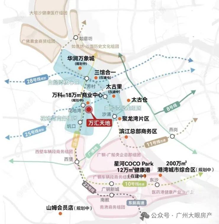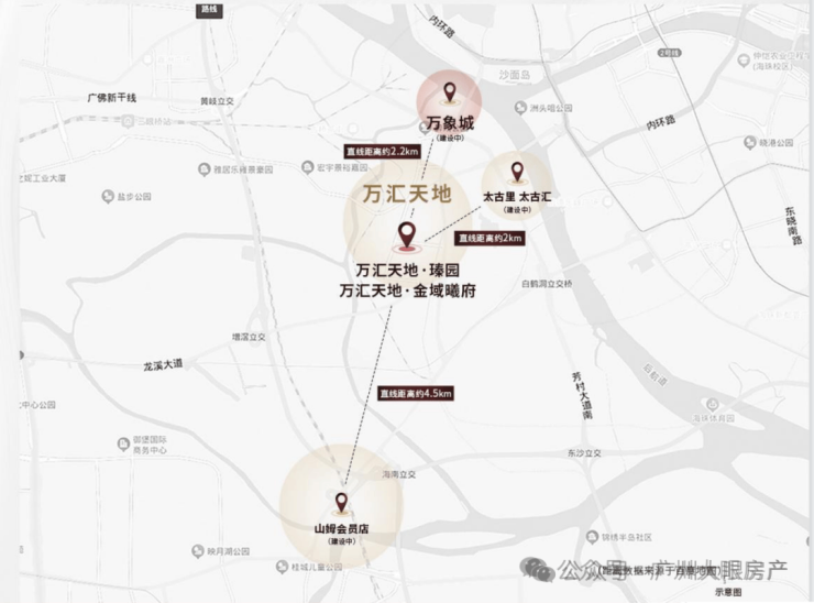 此外花地湾片区基本都是由万科统一开发,汇合白鹅潭-花地湾-聚龙组团的板块张力,白鹅潭核心区、聚龙组团、花地湾组团,于半径约2KM内构建珠江西岸CAZ黄金三极。
