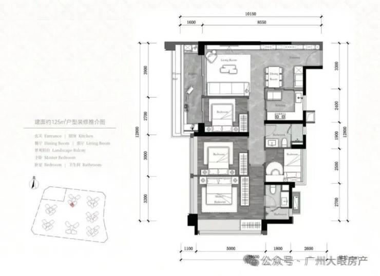 建面约𝟏𝟐𝟓 m² 𝟑房+𝟐厅𝟐卫+灵动空间,全明𝟒开间朝南 ,约𝟏𝟐.𝟖米大面宽舒居,IMAX大方厅,LDK一体化设计,全屋科学收纳系统、实用率高