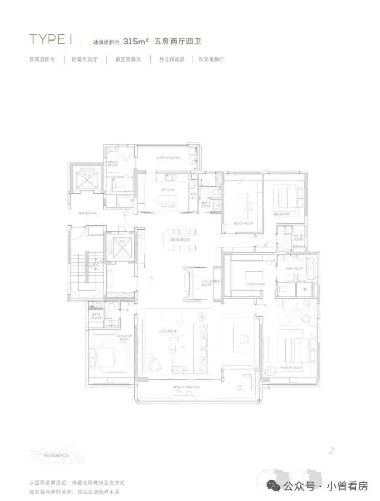 【315㎡户型】南北双阳台-独立保姆房-巨幕大宽厅-私家电梯厅