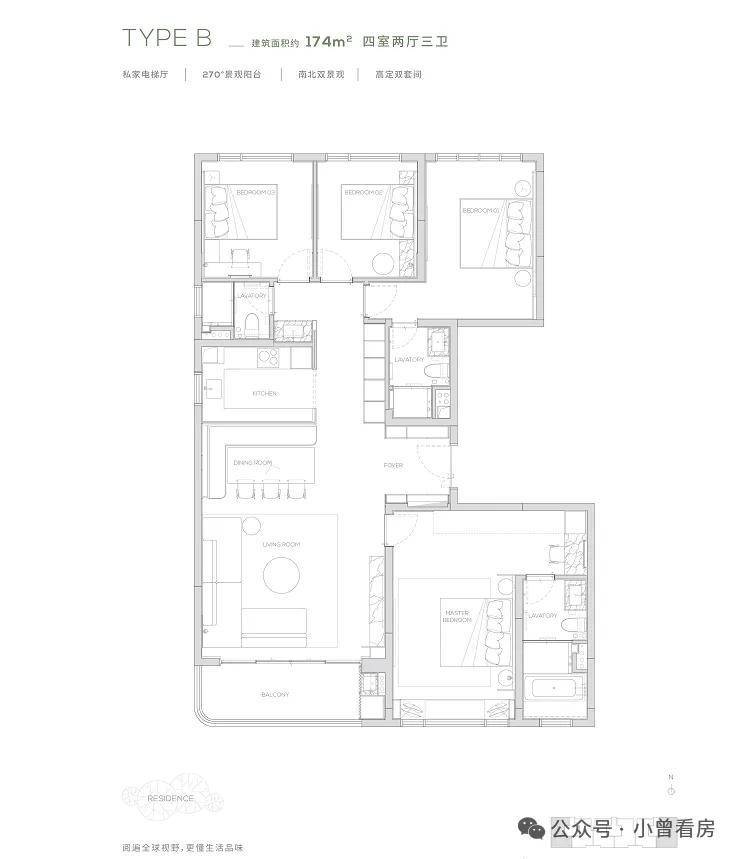 264为五房两厅四卫产品,更细腻的产品设计,超奢华四件套南向主卧,标准南向次主卧, 6.6米巨型方厅,纵向超长LDK一体化空间,专属家政保姆空间,超大容量收纳空间,令居住的尊贵从每处品质细节里流露而出,创造独一无二的奢享体验。