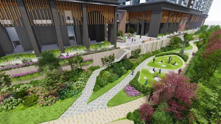 项目设计上,融入海绵城市创新环保理念,打造国际LEED金级认证,绿色建筑评价至高级别绿建三星,通过屋顶、平台与城市花园绿化的结合,有效排水、蓄水及储水,再生利用雨水资源,缓解城市内涝的压力。