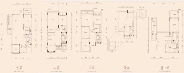 主力户型262-390㎡双拼别墅,赠送面积接近1:1,全套房设计,负一层4.4米层高可改造为私人宴会厅或家庭图书馆,顶层超大露台满足个性化需求,空间兼具功能性与奢华