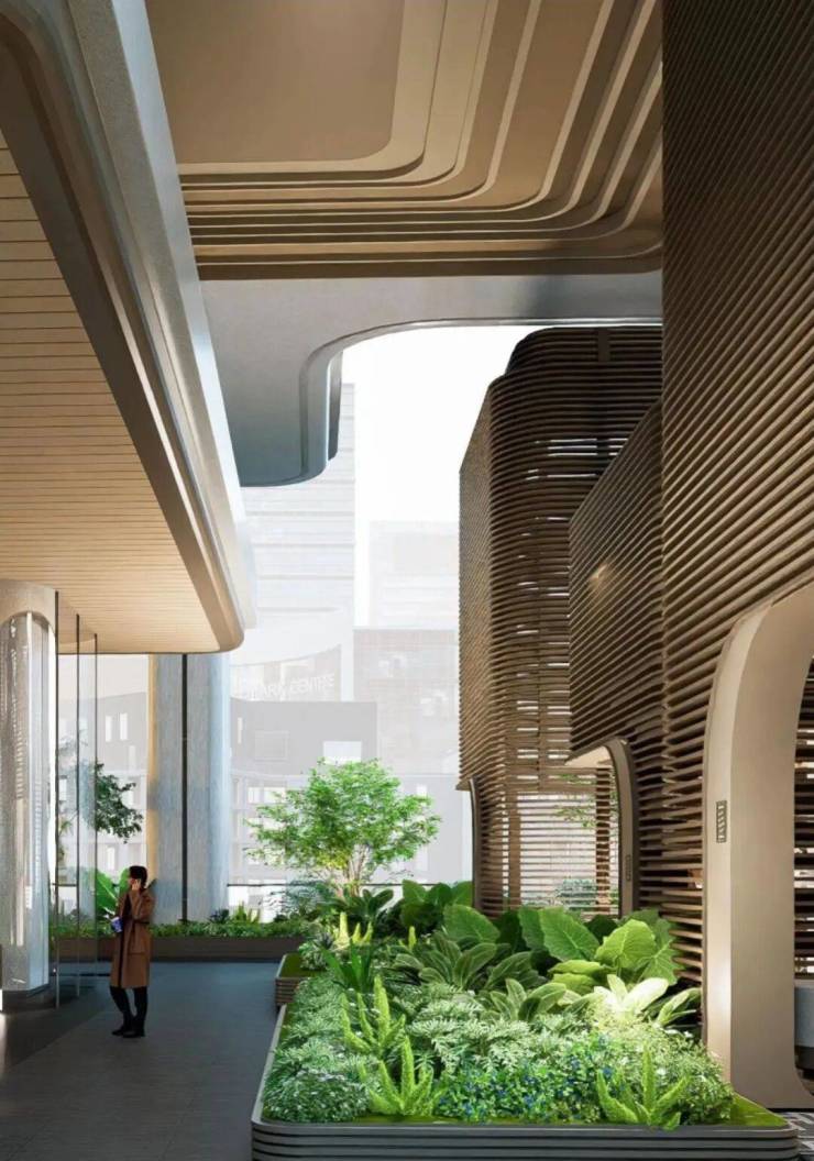 创新建筑设计:采用超高架空设计,楼栋整体抬高约18-30米,打造立体空中花园,既满足临江建筑限高要求,又实现户户望江,营造“垂直花园城市”意境。