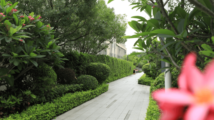 项目内部园林以“都市艺术绿谷”为理念,从“绿谷”中提取出“溪谷”、“林巷”、“流瀑”、“雨林”、“水岛”、“河石滩”六种情境, 通过艺术的设计手法将绿谷的场景感融入到景观设计中,打造极具现代、时尚、艺术的百米中轴景观,且为全封闭管理。通过打造项目私属专区,营造可游、可观、可赏的园林盛景。
