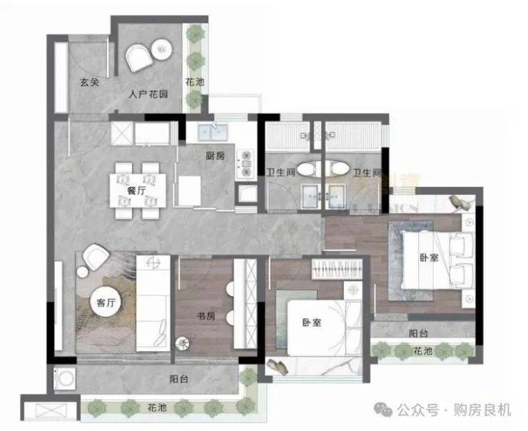 🔘在售 78-118 ㎡的三房至五房,拥有 LDKG 客餐厅一体化设计,双面宽阳台、多面宽采光设计,保证所有厅房都具有最佳的景观视野,超高实用率,最高达到 100%以上(含赠送),是天河区唯一户型高赠送社区