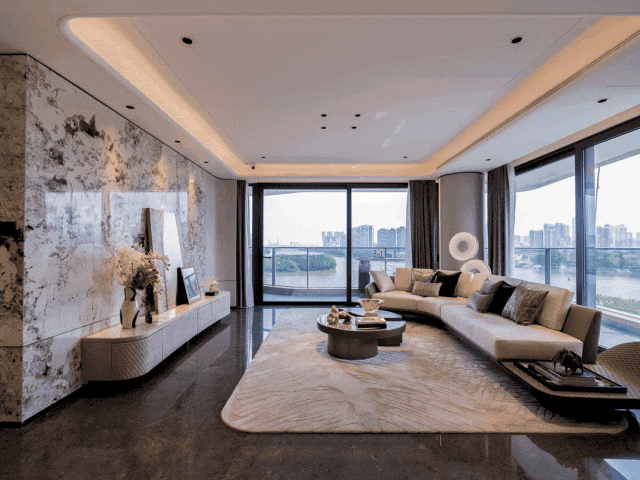 建筑的本质是“以人为本,为人所用”。高定LOW-E全玻璃幕墙,可见光透射率达到92%(普通玻璃透射率83%),有效减少声音的传导,比普通玻璃提升隔声性能30%,同时结合珠宝级工艺雕琢,搭配香槟金色豪宅标配金属铝板,通过黄金比例曲线+高定奢材,打造珠江岸上难得一见的隐贵风景!