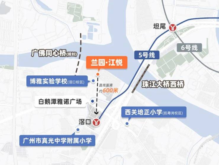 项目位置就在5号线滘口站附近,距离地铁口约1公里,项目一墙之隔,就是星河江缦及二手豪宅珠江鹅潭湾,不管是地铁出行还是自驾出行都十分便利。旁边规划的广佛同心桥,可直通佛山地区;白鹅潭大道未来也可通往广船和医药港等地。