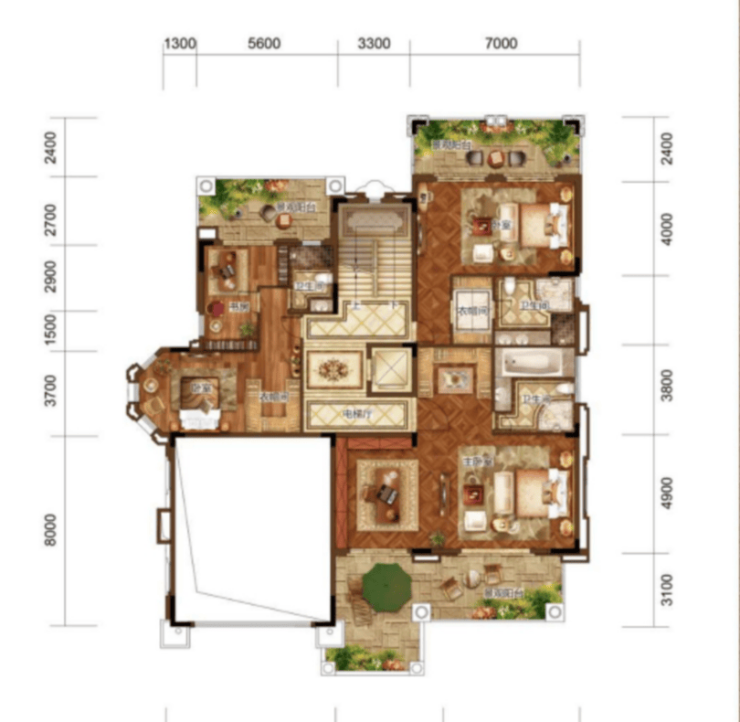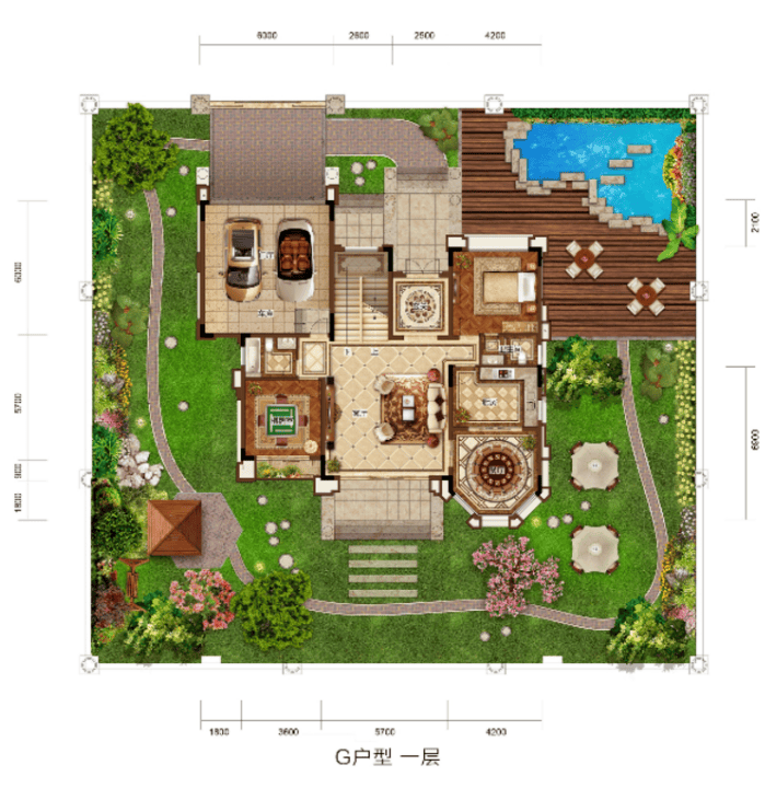 574㎡户型 花园面积:793-1027㎡