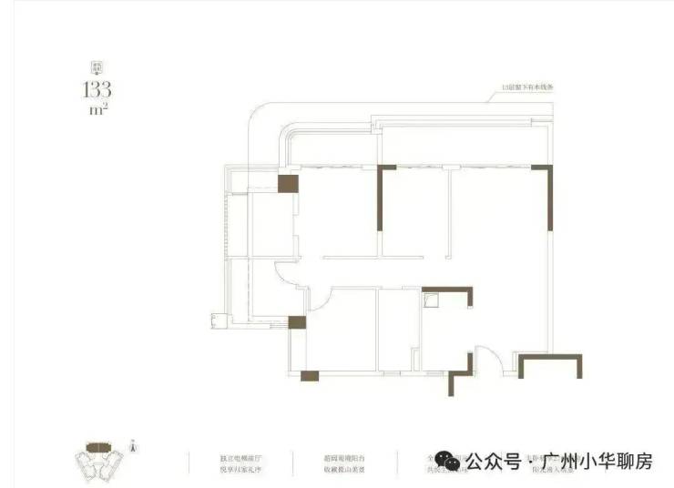 其中,约133㎡北侧看白云山,约143㎡西南向,约177㎡东南向。