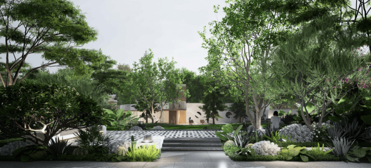 大门处保留百年榕树,打造休闲空间“榕悦广场”,休闲社交超自在!
