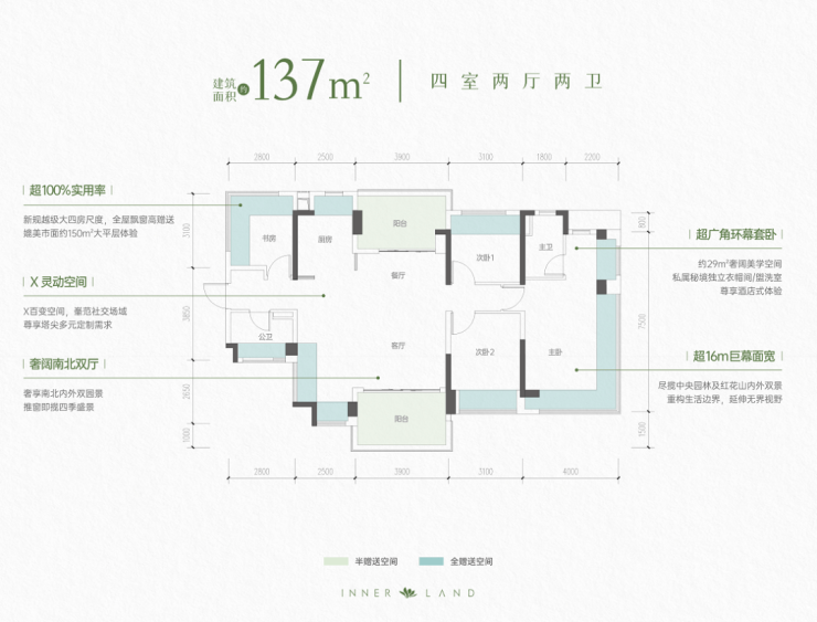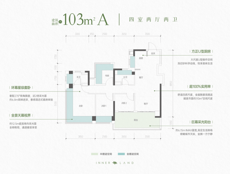 超100%实用率 新规越级大四房尺度,全屋飘窗高赠送,媲美市面约150㎡大平层体验。