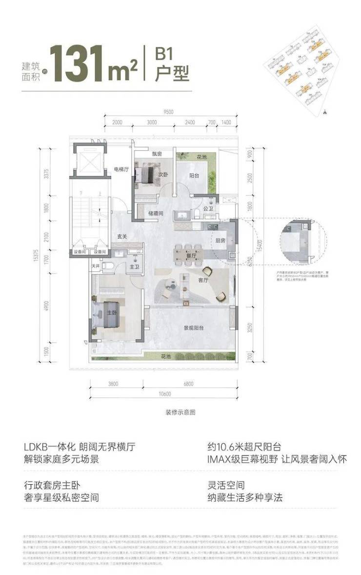 LDKB一体化朗阔无界横厅设计,解锁家庭多元生活场景;约10.6米超尺阳台带来IMAX级巨幕视野,让风景自然融入室内;行政套房主卧搭配全景落地窗,打造星级私密空间;灵活空间设计可根据需求改造,纳藏生活多种享法,适合改善型家庭或喜欢社交聚会的居者。
