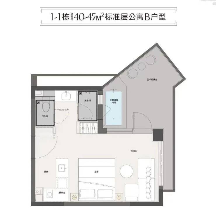 项目计划分三期开发,当前在售产品包括:温泉公寓35-45㎡ ,空中院子45-95㎡
