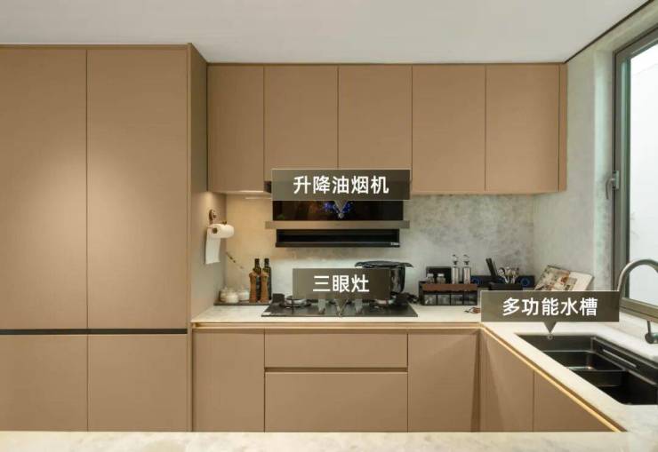 比如,为了匹配番禺美食之都的气质,厨房就配备了三眼灶、升降油烟机、多功能水槽、蒸烤箱等厨电五件套,就算每天煲靓汤,做镬气小炒,烘焙点心,都不怕施展不开手脚。