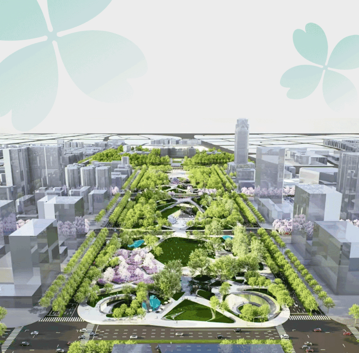 以海棠花街构建城市地标式商业风景线,对外衔接城市、广场与约10万方中央公园,对内成为业主的共享客厅。
