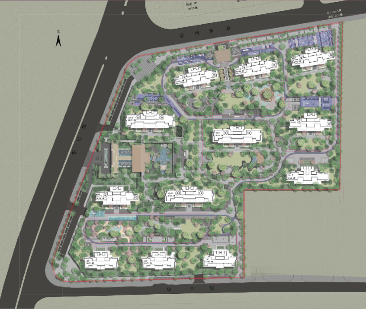 本项目打造礼序与自然交融的园林胜境,以"一环三洲、五进十园"的立体景观架构重构人居美学。项目以约两百米尊享礼仪轴为脊,串联起"迎宾-仪式-共享-私密"四重空间序列。内环绿廊巧妙串联全龄活动区、阳光草坪等功能模块,形成沉浸式园林空间。
