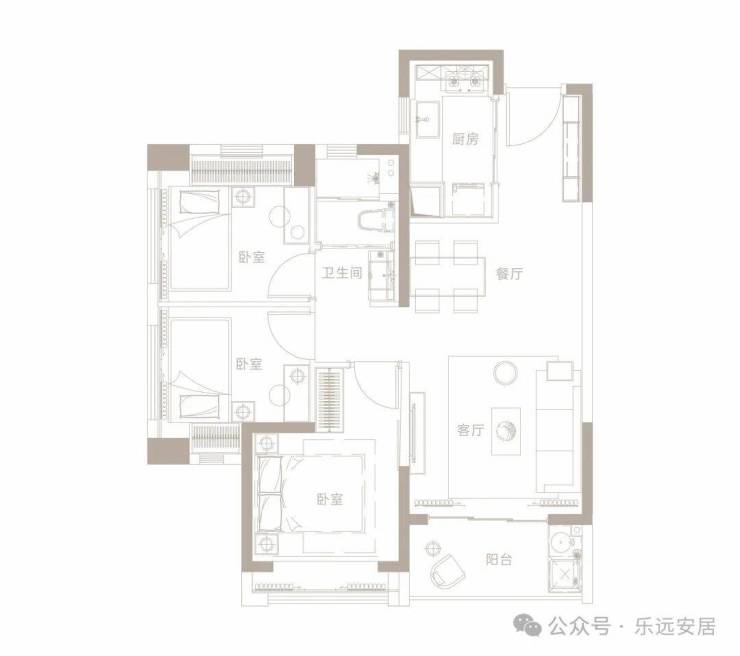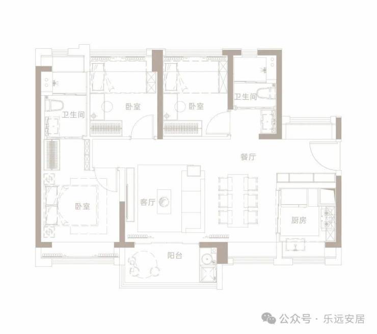 面积:79-85㎡3房1卫,91-95㎡3房 2卫,125㎡4房2卫