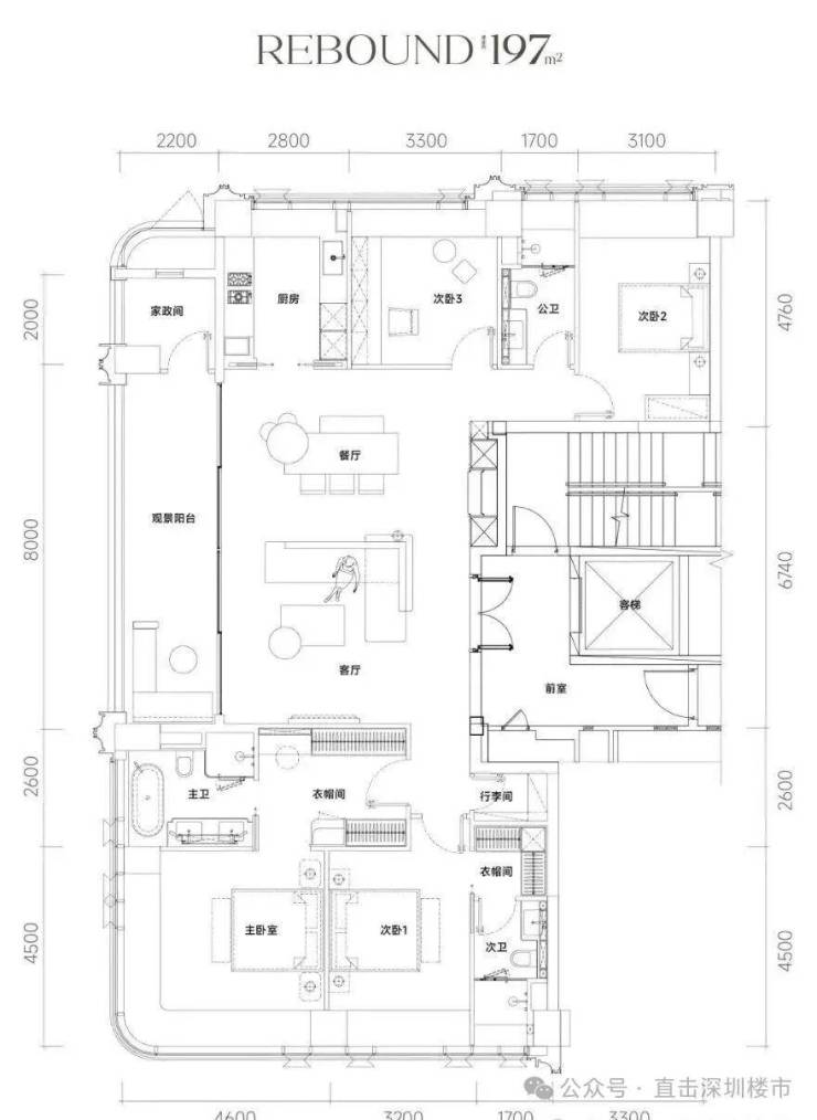 主力户型为186-247㎡,主打T2/T3楼型