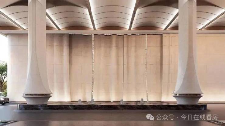 车行入户大门采用殿堂级落客区设计,连接天幕和水景,宛如踏入了一座奢华的宫殿,归家的仪式感瞬间拉满。每栋独立入户大堂采用无棱角高端石材,风格与大门相呼应,彰显着您的尊贵身份 。