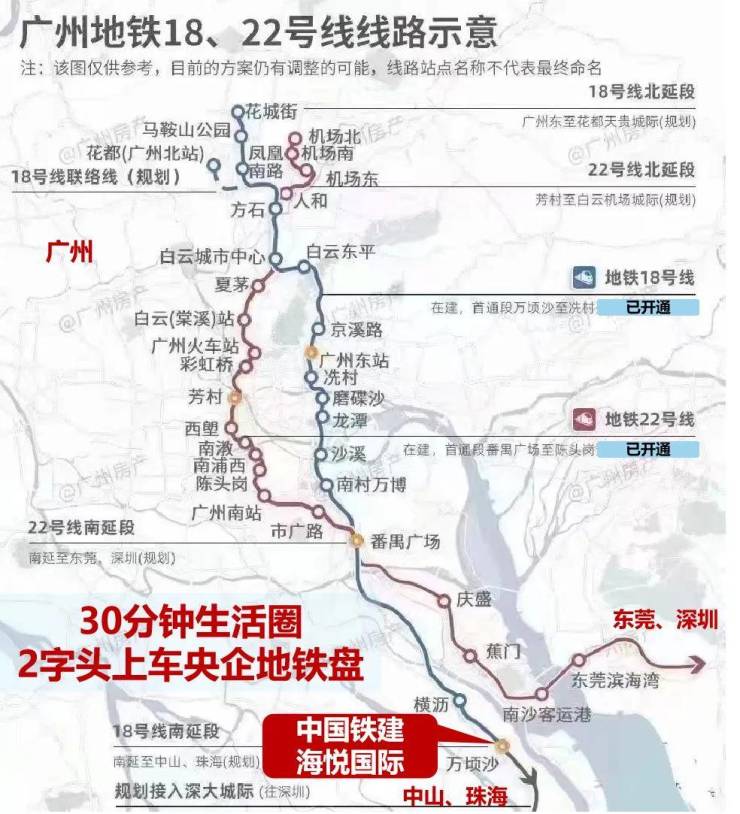 2、18号线地铁快线,4站30分钟直达天河,与地铁22号线无缝衔接,33分钟到广州南站;