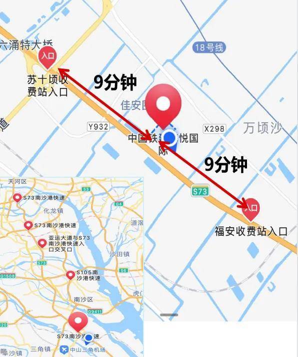 1、项目距离南沙枢纽(万顷沙站)约2公里,构筑15-30-60分钟湾区生活圈