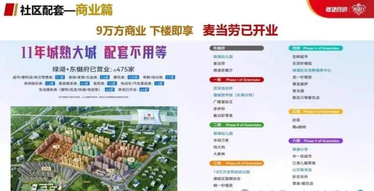 自身有20万心商业购物中心、 自带约8万平方米商业街,其中华一佳、钱大妈、华润万家旗下品牌万家LiFE、多伊份、尊宝比萨、江渔儿等50家品牌商家已开业