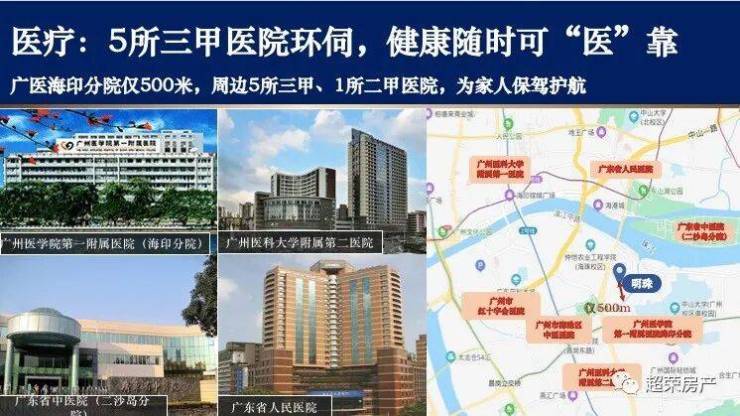 600米内有广州医学院第一附属医院海印分院,1公里有海珠区第一人民医院、广州市海珠区中医医院以及广州医科大学附属第二医院、广州医科大学附属第一医院等。