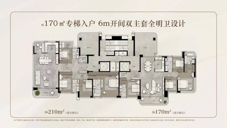 ◎产品配置:北区2T3/3T4塔楼,南区2T2板楼,建面约90-120-140-170-210㎡云幕平层