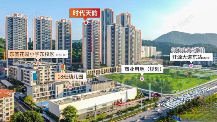 教育方面,时代天韵拥有全龄教育,不但配建18班幼儿园(由黄埔教育集团承办,2024年9月已开学),还有36班省级名校——东荟花园小学(已开学)