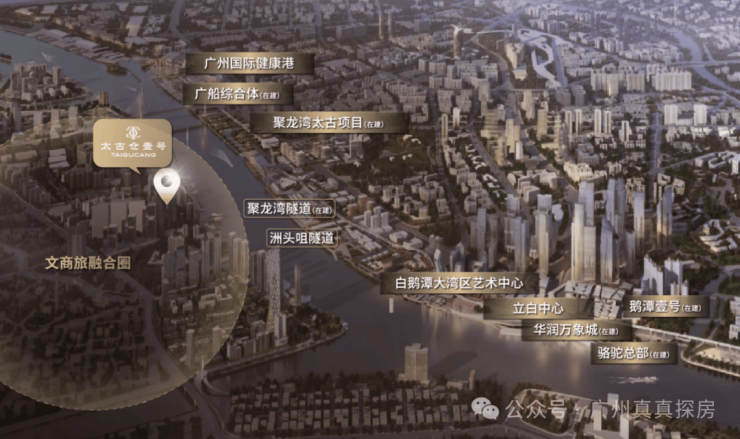 太古仓封面,占位城市文脉:项目一线临太古仓码头、珠江,背靠广州市中心。这里是广州近代工业与商贸的见证地,是城市历史的“活化石”,占位代表广州城市文脉与未来滨水生活复兴的核心,具有独特的文化溢价价值。