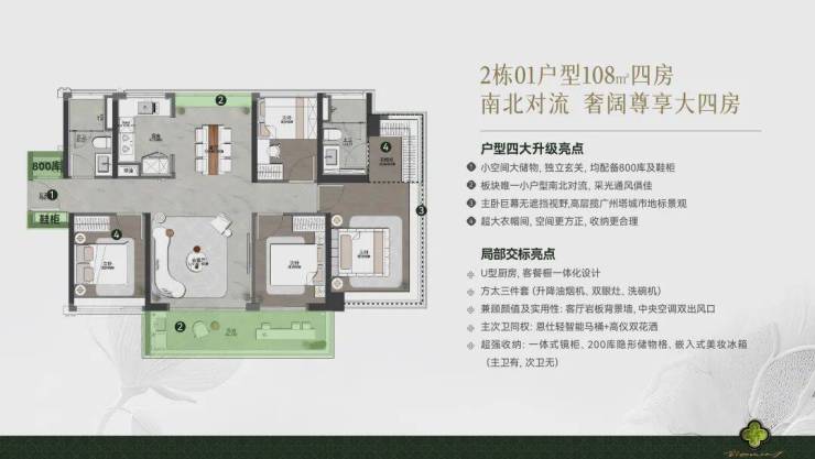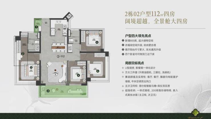 ◎面积段:约108-130㎡全南向·新规四房·约110%使用率