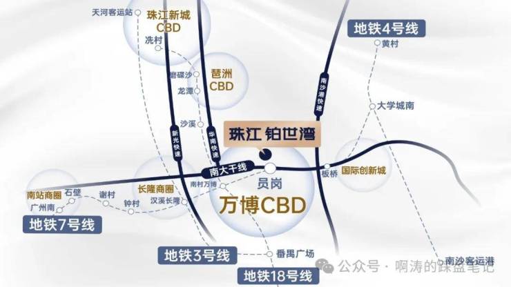 番禺珠江铂世湾位于广州市番禺区万博中央商务区,是珠江投资开发的 “万博封面、一线江景、铂世湾藏品、都市顶豪” 项目。以 “湾区之心、万博封面、铂世藏品、中心生活” 为核心价值,是“铂世”系在番禺的封面作品,定位为万博CBD面向全球财富家族、企业主与城市高净值人群的终极江景资产。