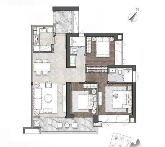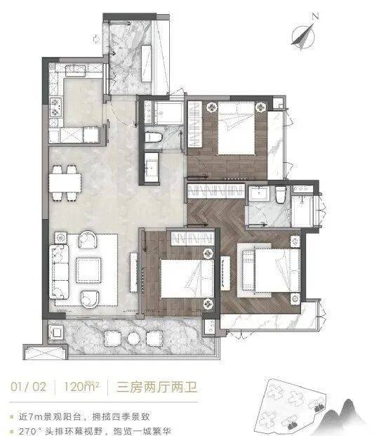 【A5-01/02户型】 建筑面积约120㎡三房两厅两卫