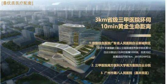 3公里,三甲医院环伺,广东省人民医院(白云新城院区)、南方医科大学南方医院、第八人民医院(嘉禾院区)等三甲医院